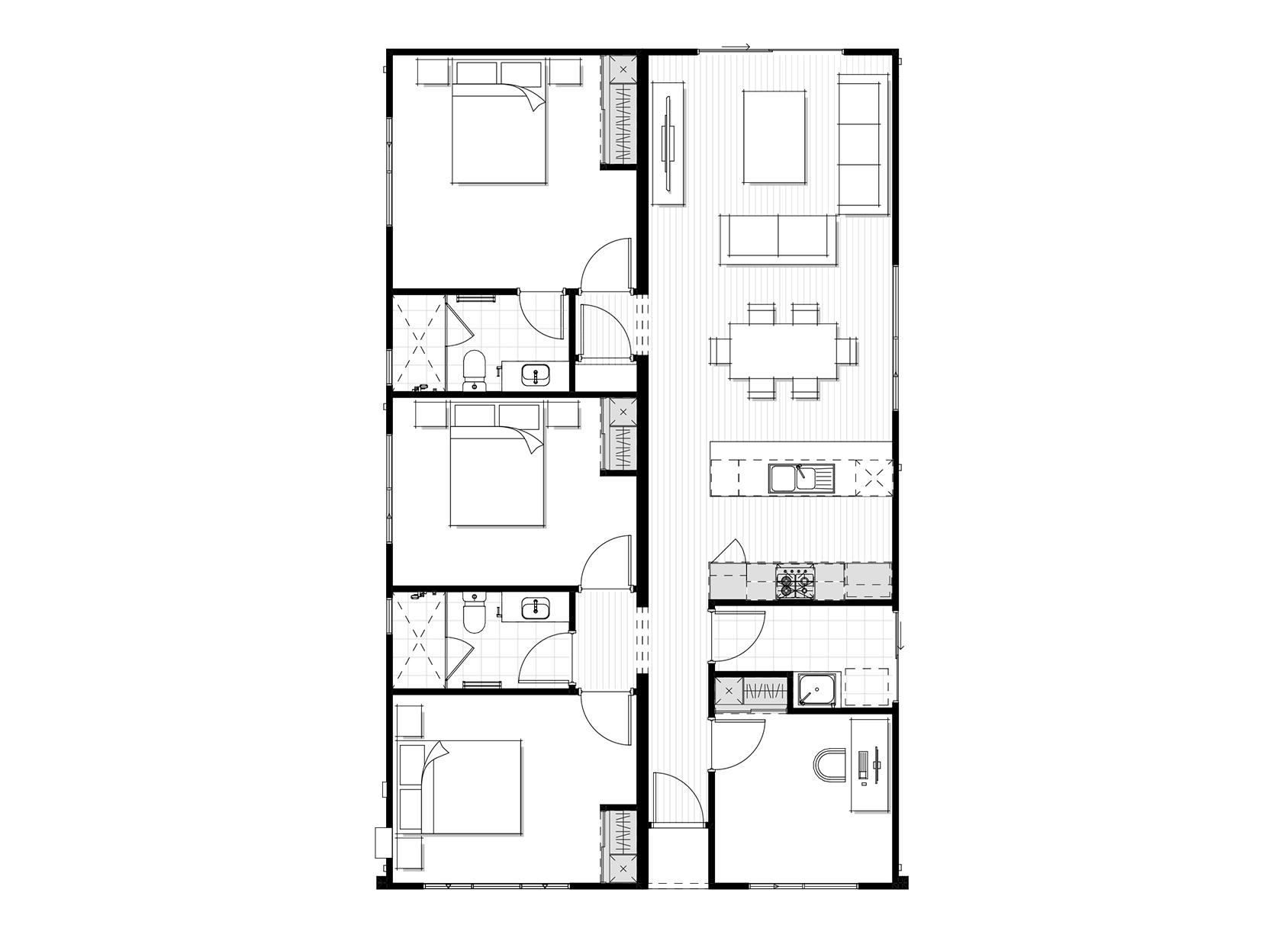 The functional kitchen overlooks an open plan dining and living area, and three of the four bedrooms have built-in robes.