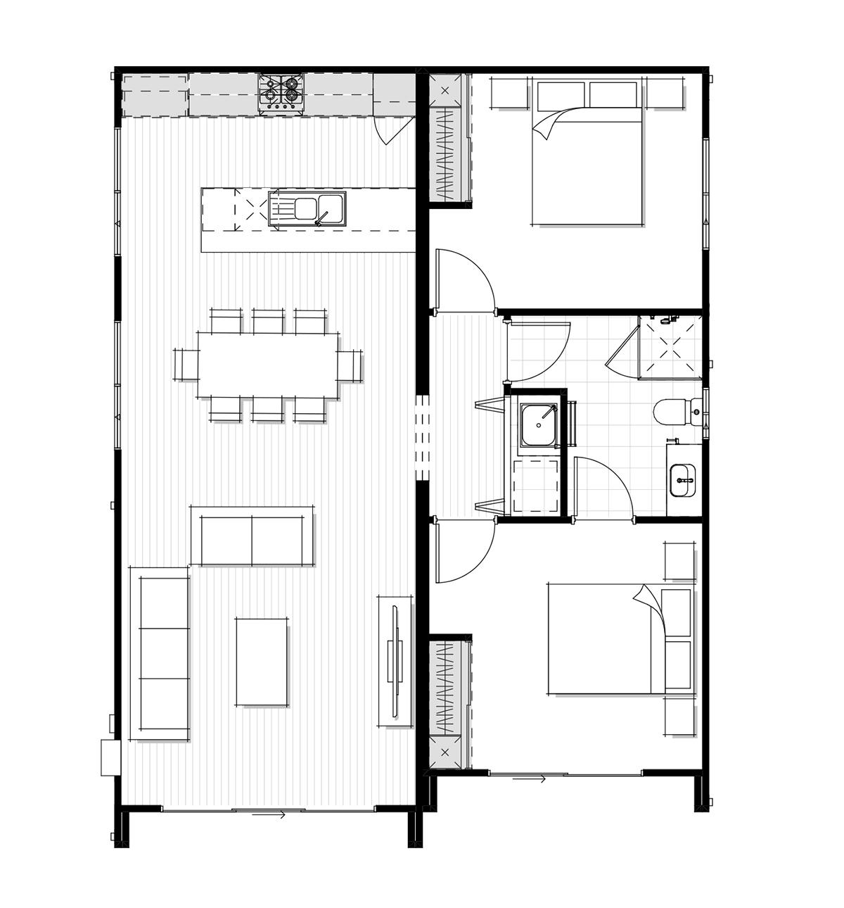 Helskini offers a contemporary option for those looking for a two-bedroom, one-bathroom home.