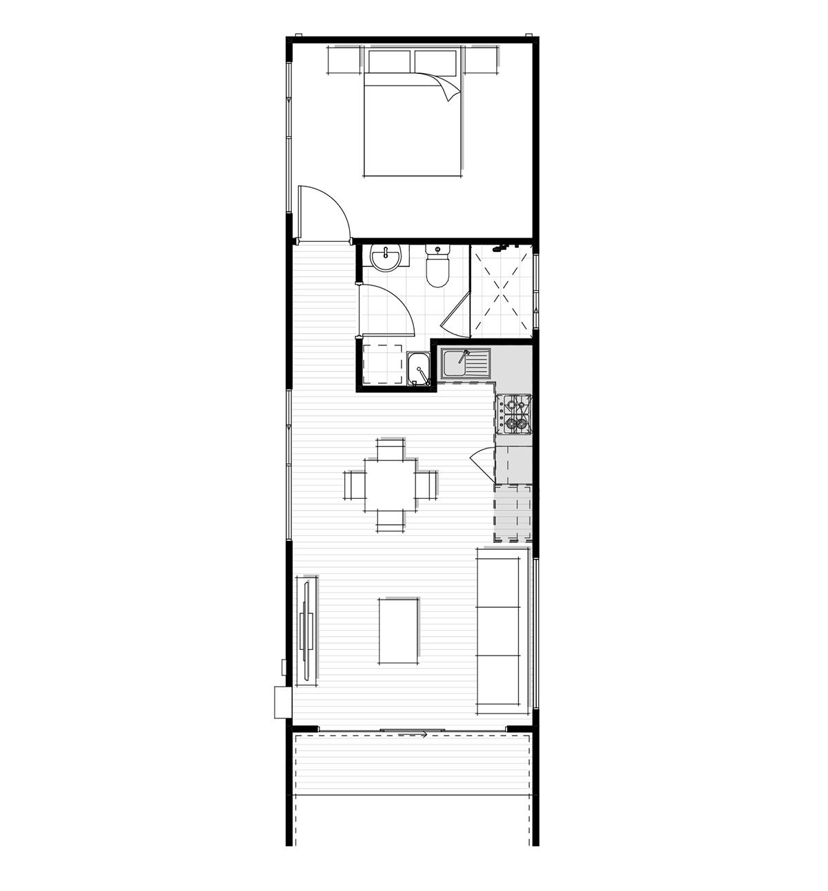 The Oslo is a sleek and modern modular home designed for both functionality and style. The layout optimises space with an open-plan living, dining and kitchen area, complemented by a private bedroom and bathroom. The design has a contemporary aesthetic, perfect for compact living or as secondary accommodation.